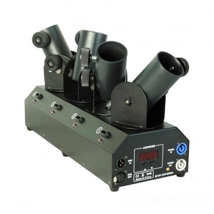 FX 4-SHOT è un dispositivo di effetti speciali che consente di creare rapidamente e facilmente effetti pirotecnici, fumogeni e altre scenografie spettacolari durante eventi e performance live.